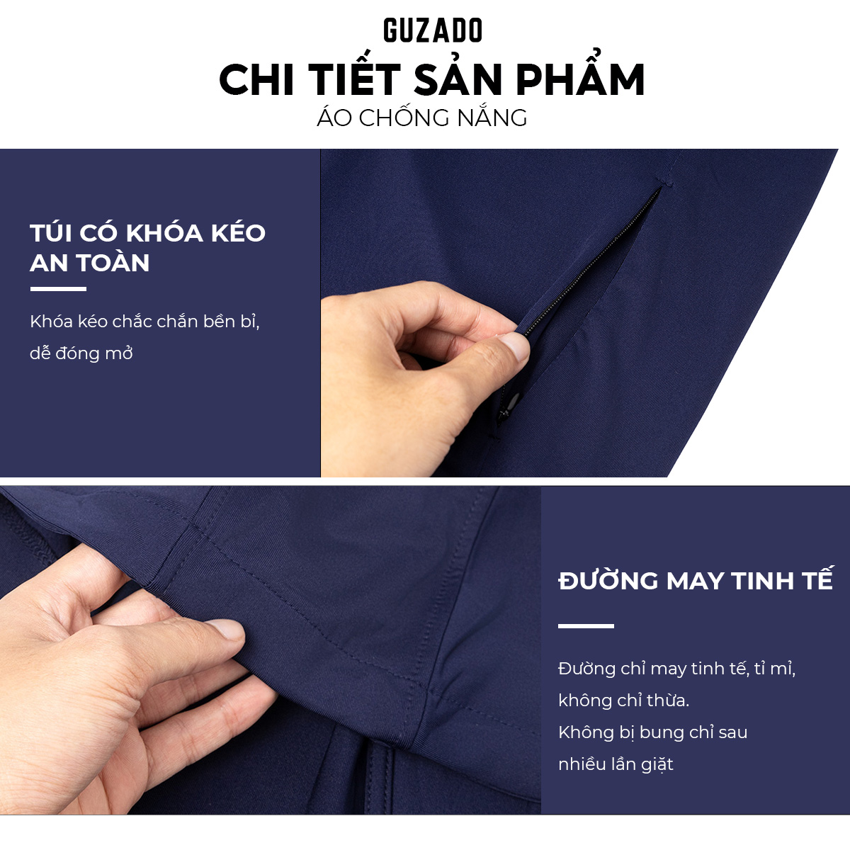 Áo chống nắng Guzado có khả năng xử lý hoàn thiện vải nhanh khô, bề mặt vải nhiều lỗ nhỏ gia tăng khả năng thoát ẩm, sử dụng linh hoạt khi đi ngoài nắng.