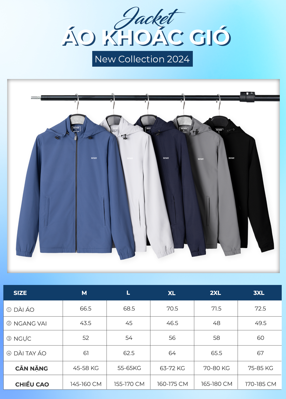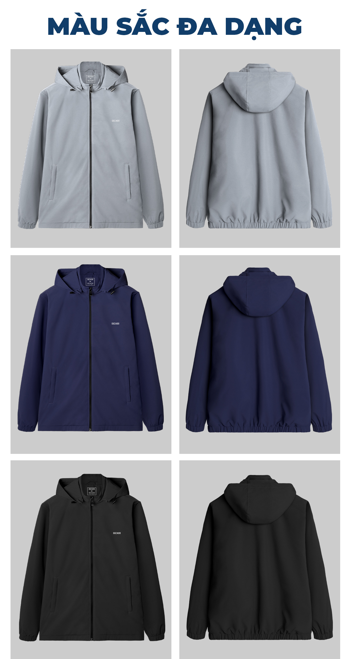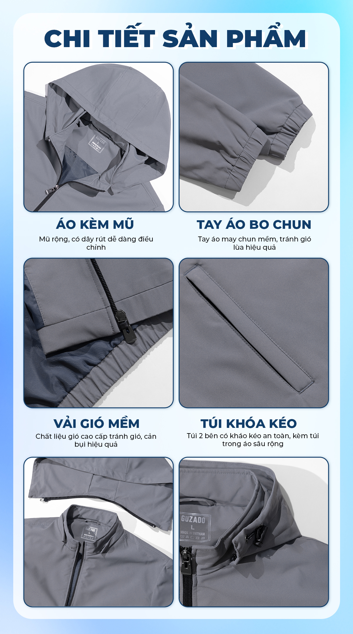 - Xuất xứ: Áo gió nam Guzado được sản xuất tại Việt Nam