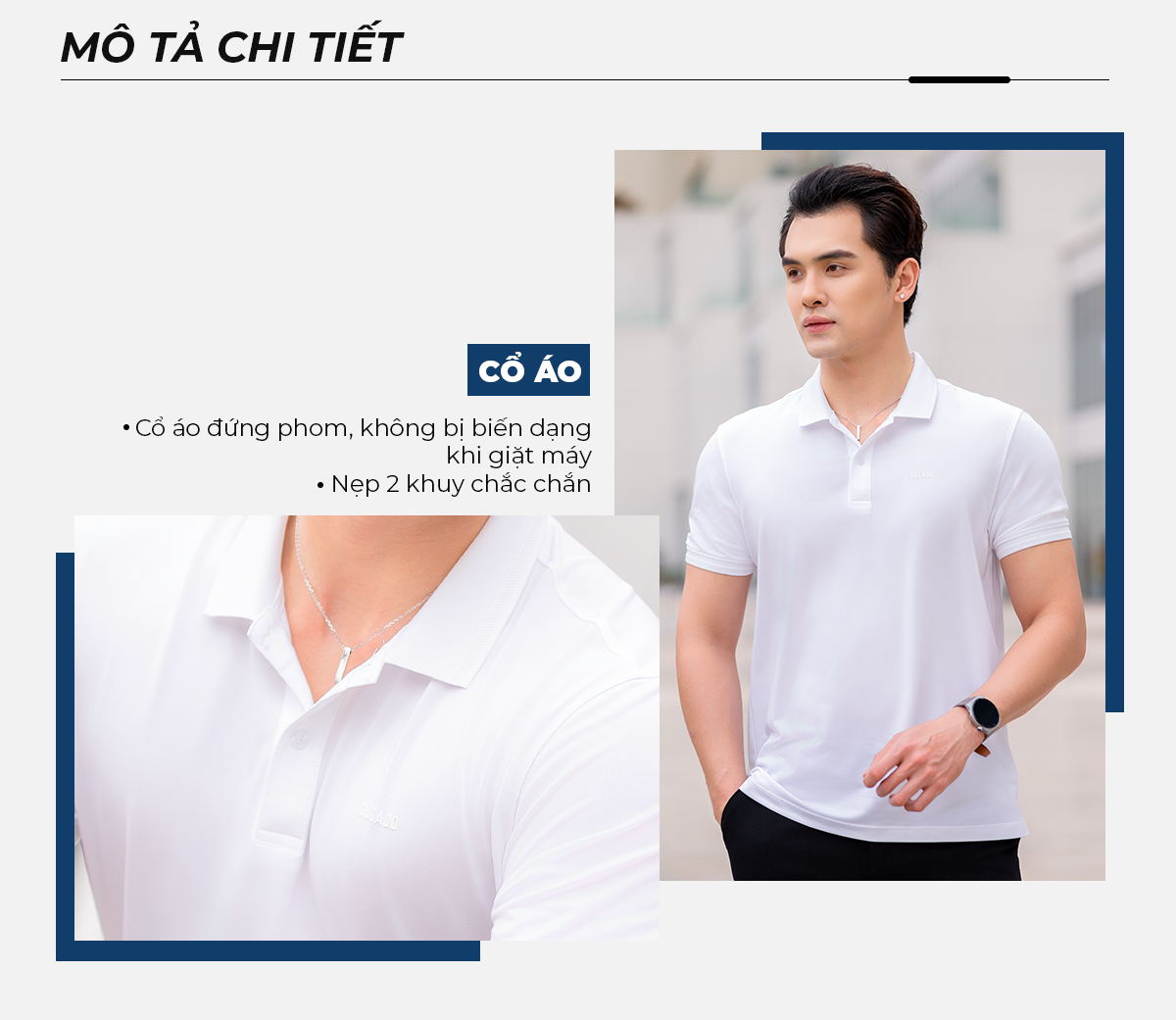 Cổ bẻ cứng cáp, form dáng Regular Fit tôn chọn vóc dáng tạo cảm giác khỏe khoắn.