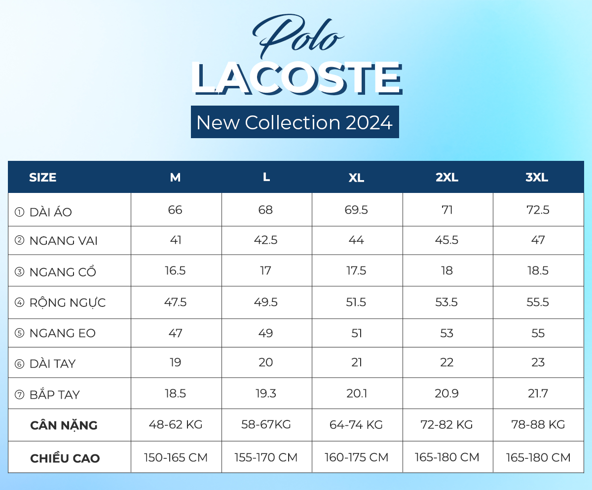 - Size 5 ( XXL): Cân nặng 72 - 78kg, Chiều cao 174cm - 180cm.