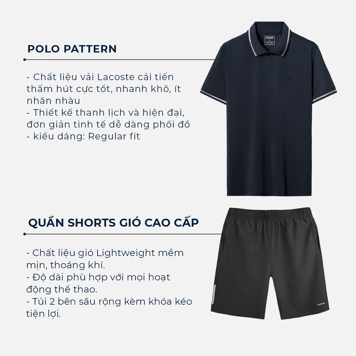 - Xuất xứ: Bộ thể thao nam(áo polo thể thao kết hợp quần gió) được sản xuất tại Việt Nam