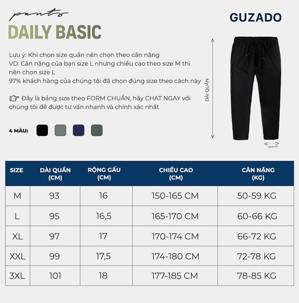Quần ống suông nam, quần dài nam GUZADO