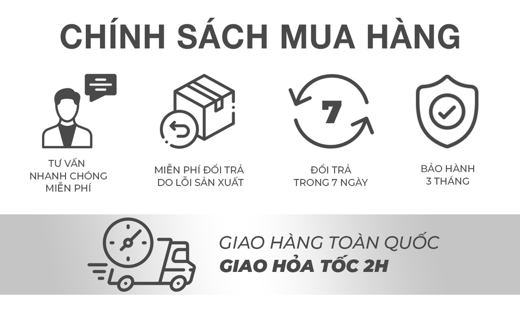 - Hoàn tiền hoặc đổi hàng ngay lập tức nếu sản phẩm bị lỗi do sơ suất của nhà sản xuất