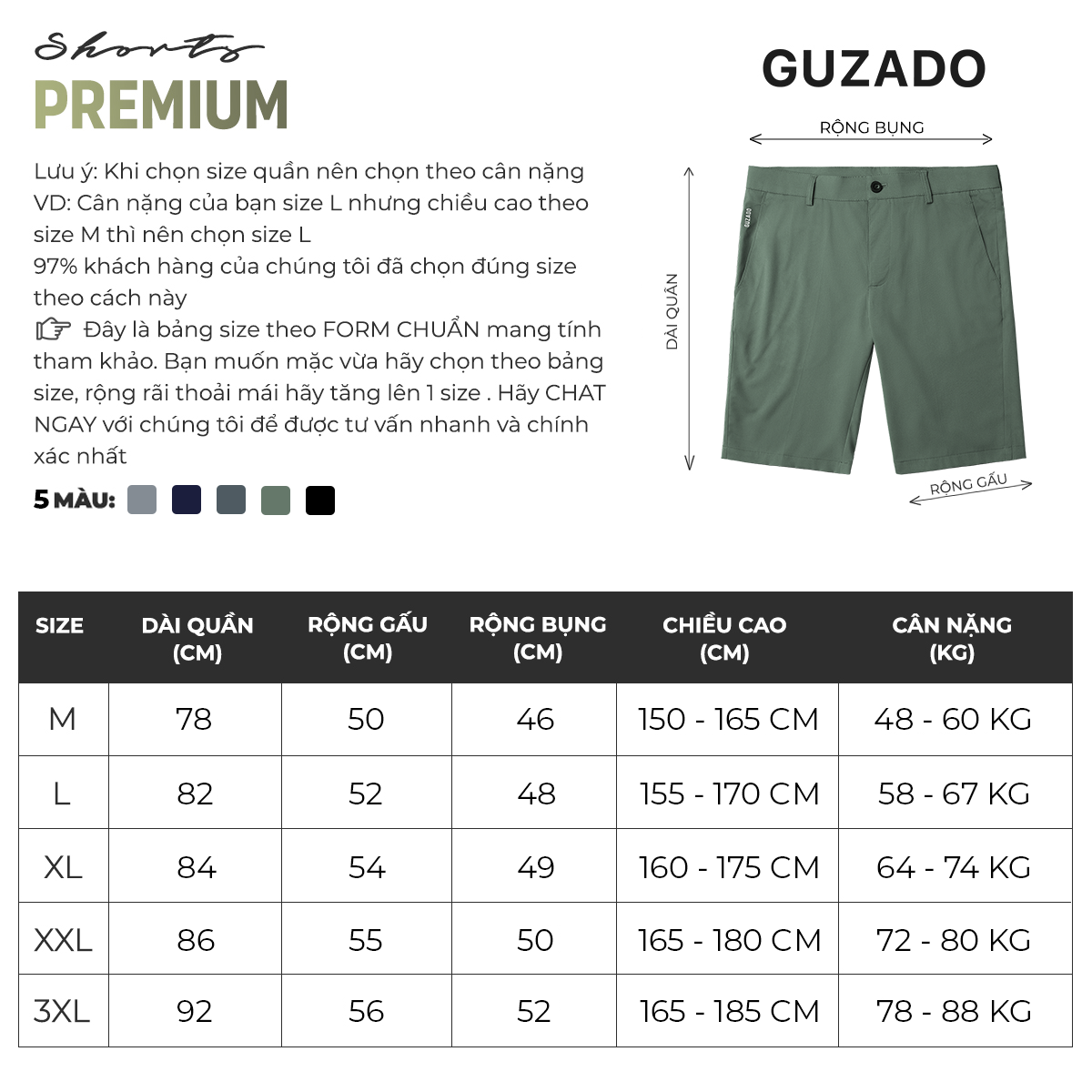 Quần Short Tây Âu Nam GUZADO Kaki Giữ Form Cạp Cúc GSR15